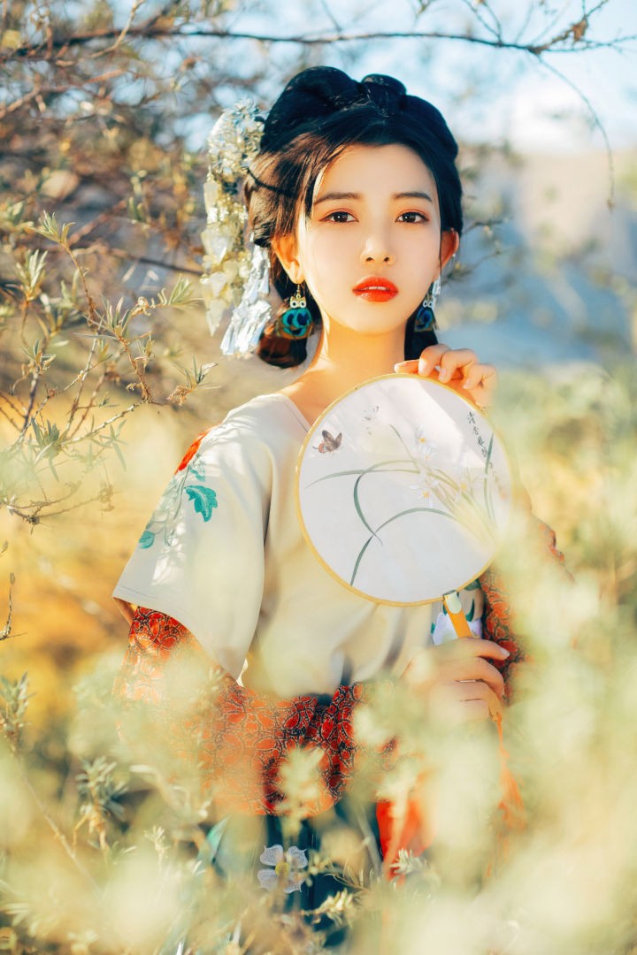 扇子是很好看的道具,所以,拍照的时候,如果找不到手部的摆姿姿势的话,那就找一把好看的扇子,拿着摆拍,文艺气息满满,很好看。