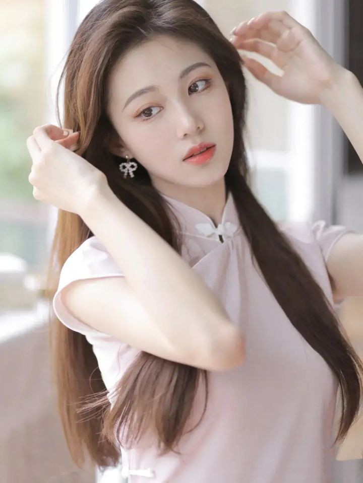 女生的头发,是拍照解放剪刀手很好的道具,拍照的时候,如果不知道要怎么把姿势摆好的话,那就让自己抬手起来去抚摸自己的头发,撩一撩,抚一抚,就能美美的啦!