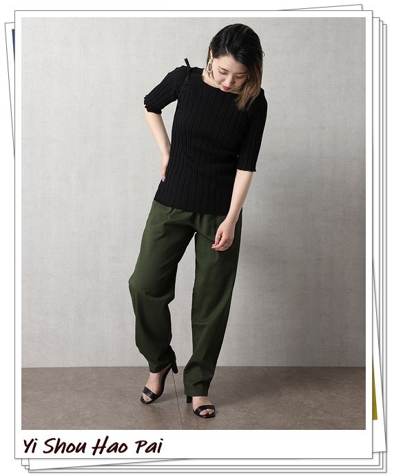 绿色的贝克裤是时尚女人们关注的热门单品。和黑色的紧身上衣以及黑色高跟鞋搭配,即可增添轻熟女人味。
