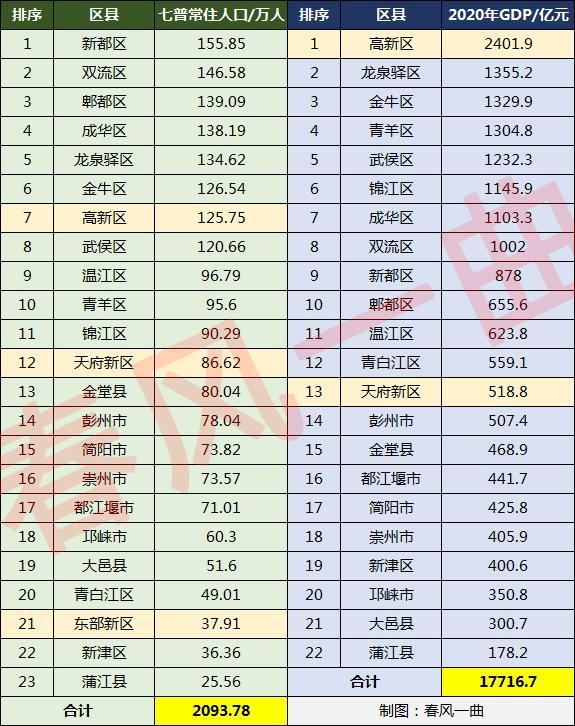 成都各区县人口一览:龙泉驿区134万,金堂县80万