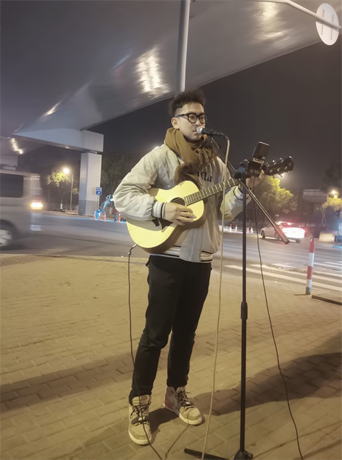 上海魔都的繁华大街,每当夜幕降临,路灯点亮,总能看到徐博杰的身影,他手拿话筒和一把吉他在深情的演唱,在上海的喧嚣中,他的歌声治愈抚慰人心,也温暖着这个城市里的人。