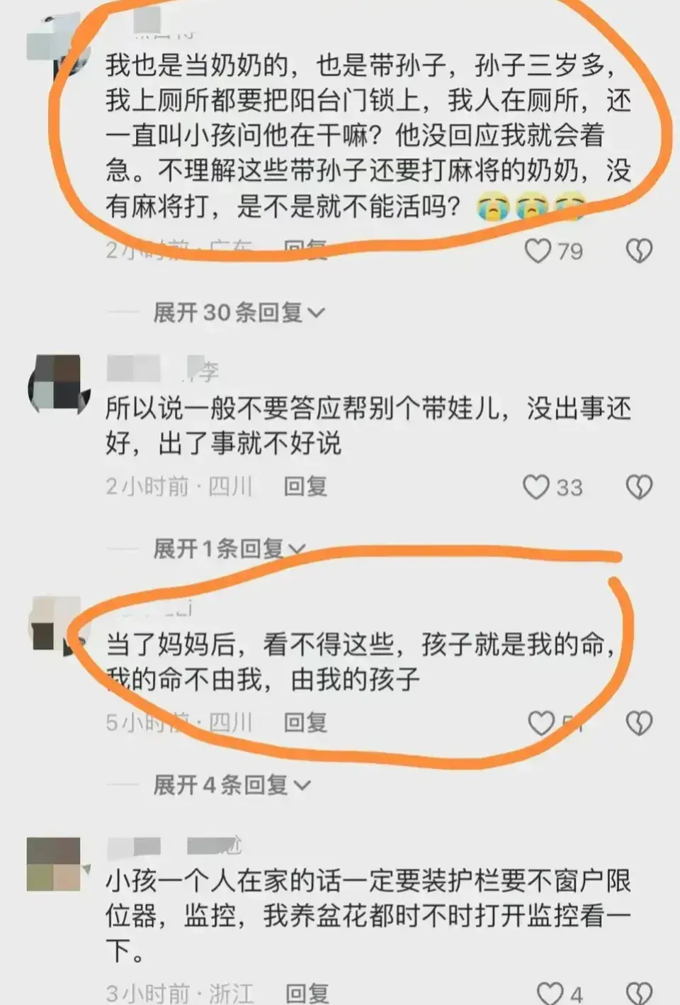 这起悲剧引发了网友们的热议。许多网友对家长的不负责任感到愤怒,认为家长应该时刻关注孩子的安全。有网友表示:“我也是当奶奶的,带孙子时上厕所都要把阳台门锁上,时刻关注孩子的动态。”还有网友指出:“对于没有行事能力的小孩,家长一定不能让孩子离开自己的视线!”