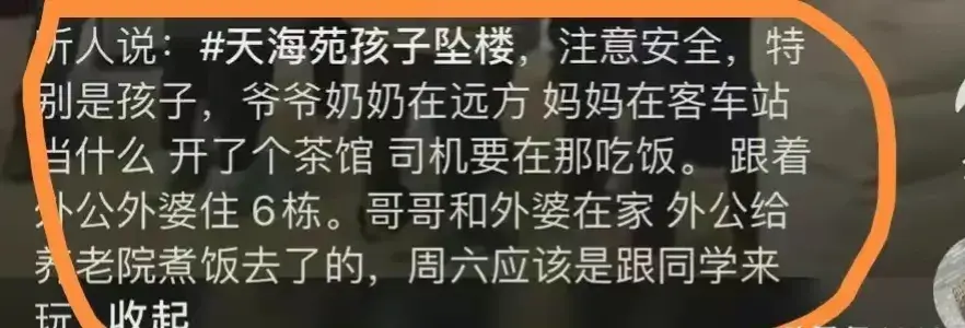据了解,孩子的父母都在外地打工,孩子由家里的爷爷奶奶或外公外婆看管。事发时,孩子的监护人并不在场,直到悲剧发生后才得知消息。这样的家庭背景让人不禁对孩子的安全感到担忧。