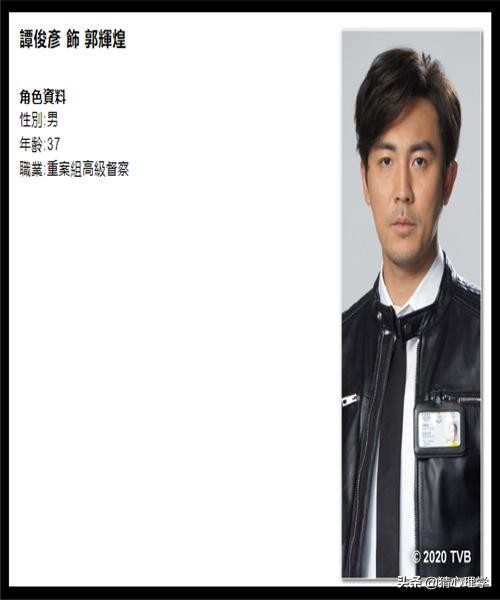 谭俊彦饰演郭辉煌,年龄37,职业:重案组高级督察:香港的高级督察也就是相当于我中国大陆的一级督察即警衔中警督的最高级。
