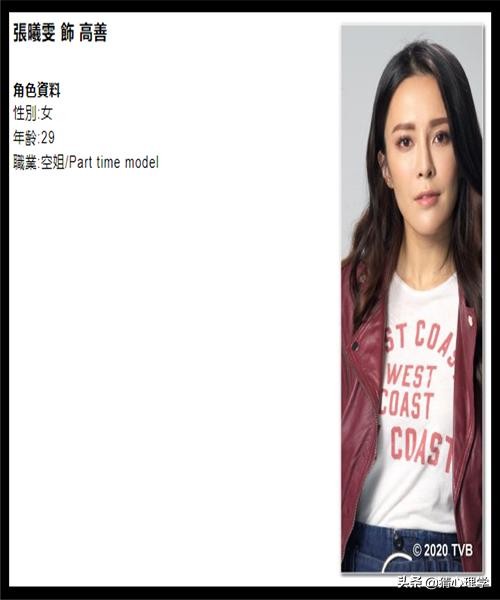 张曦文饰演高善,年龄29,职业:空姐:主要职责是在民航飞机上确保乘客旅途中的安全和舒适(例如为乘客供应飞机餐等餐饮),指导乘客使用机上安全设备以及在紧急情况下组织乘客逃离飞机等等。