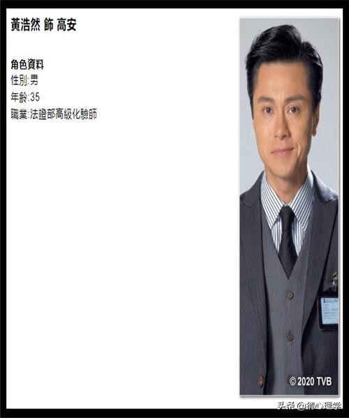 黄浩然饰演高安,年龄35,职业:法政部高级化验师。