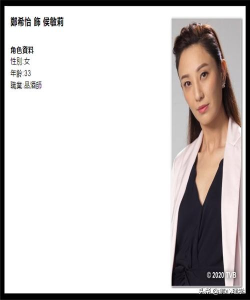 郑希怡饰演侯敏莉,年龄33,职业:品酒师:品酒师是应用感官品评技术,评价酒体质量,指导酿酒工艺、贮存和勾调,进行酒体设计和新产品开发的人员。品酒师是一种非常辛苦的职业,平均每年要品尝3000多种新酒。脑子里储存了10000种以上的味道。