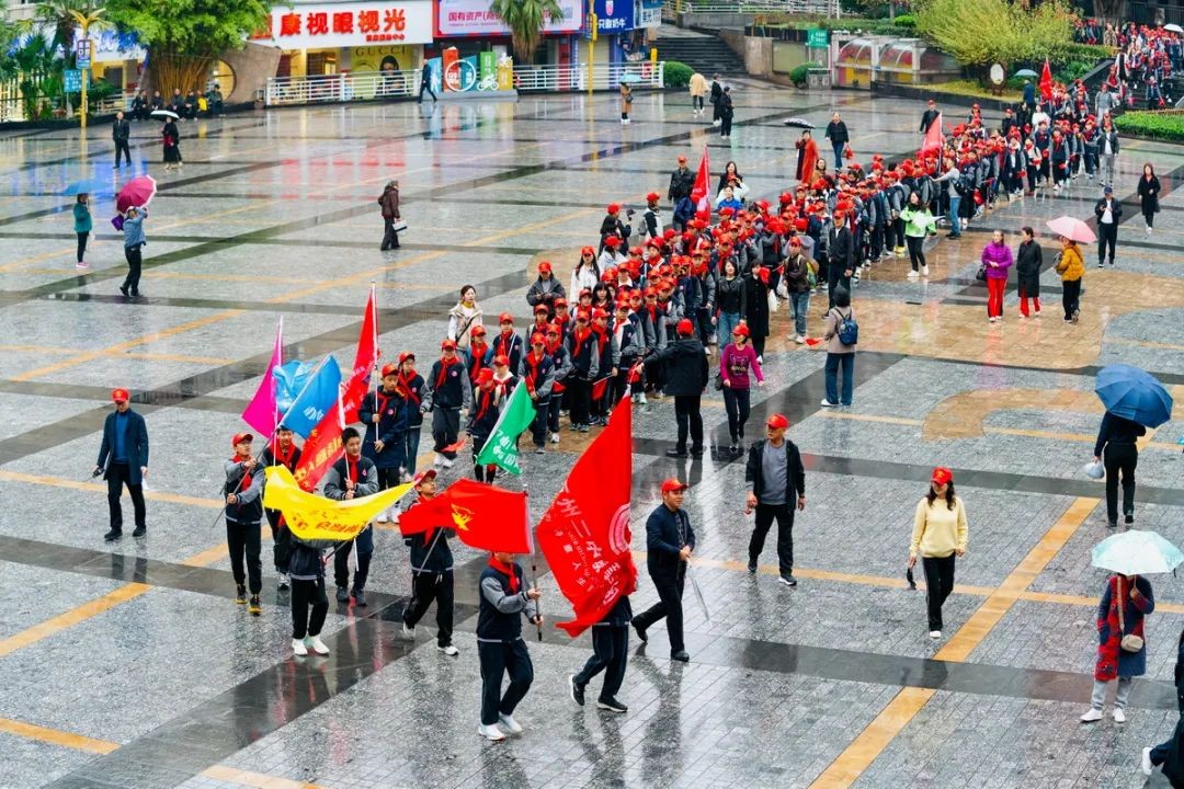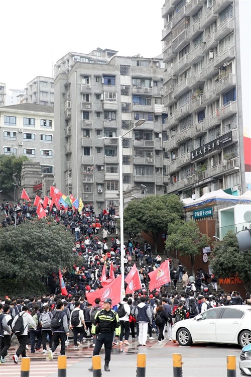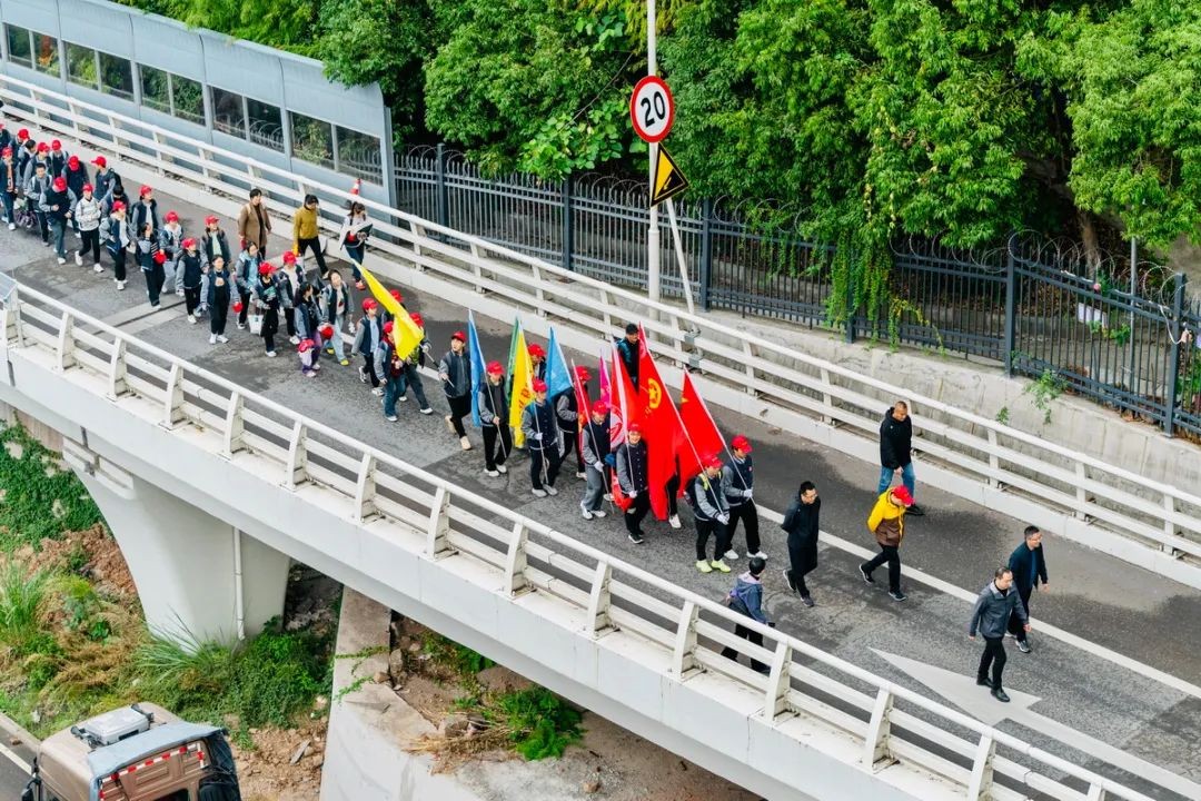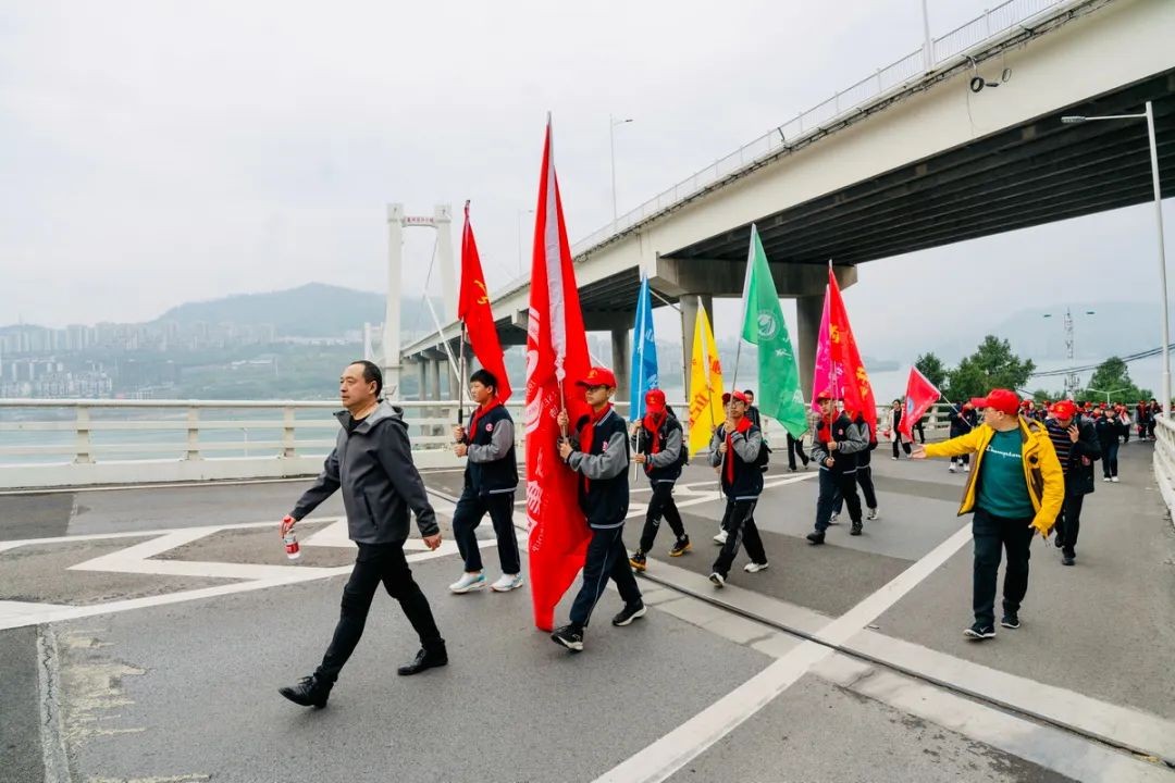 十八公里征途,从白岩校区出发,途经音乐广场、长江二桥,至南滨大道小憩,再跨长江三桥,沿红花地、移民广场返回。小雨绵绵,寒意袭人,却挡不住少年们的坚定步伐。他们脸上写满青春,脚下充满力量,展现出二中少年的时代担当与勇气。