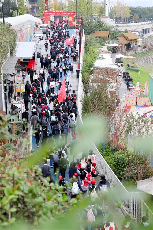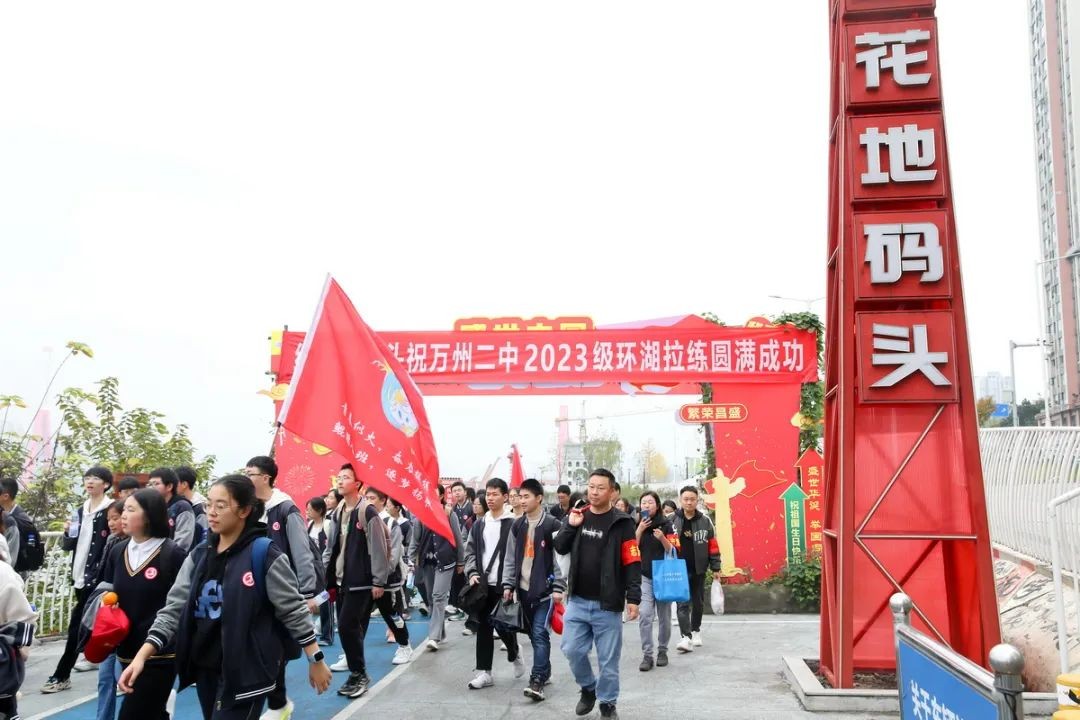 万州二中高 2022级及初2024级、高2023级学子先后于11月15日和11月22日,以“诗意二中平湖逐梦行”为主题,开展了一场别开生面的环湖拉练活动。此次活动,不仅是万州二中“五生德育”品牌的生动实践,更是一堂鲜活的思政大课,旨在锤炼学生的坚韧意志,培育团结互助的精神,激发对家乡的热爱之情。万州二中党委书记陈兵、校长朱黎秀等校领导及相关处室负责人参加了本次活动。