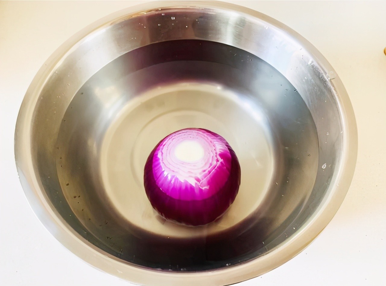 妙招三,凉水侵泡。把洋葱剥去外皮,头尾去掉,将洋葱切成两半,然后放入凉水中浸泡10分钟,这样也可以防止洋葱辣眼睛。我们在切丝或切块的时候,可以给边上放一盆凉水,把切好的洋葱放入凉水中,这样也能够降低洋葱发出来的蒜氨酸酶活性。