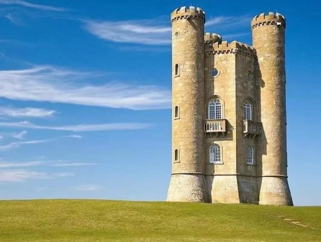 百老汇主干道一直延伸至山上,山顶有一座高塔,也就是“百老汇塔”。这座塔并不高大,但从塔上望下去,满眼的山坡和树林、草地和羊群,配上蓝天下的蜜色城堡,别有一番特别的诗情画意。