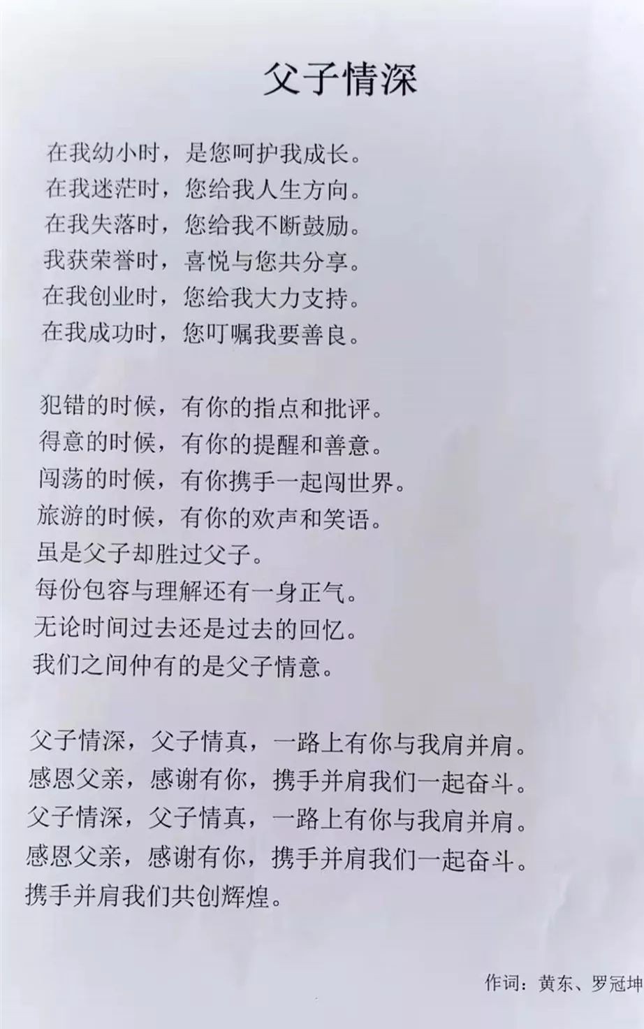 上个月,黄东在他的老师罗冠坤的指导下,写了一首词,发在朋友圈,并配文“送给辛劳的父亲,孩儿不孝!惭愧惭愧。”他还准备找人谱上一首曲子,一词一调,送给自己的父亲。