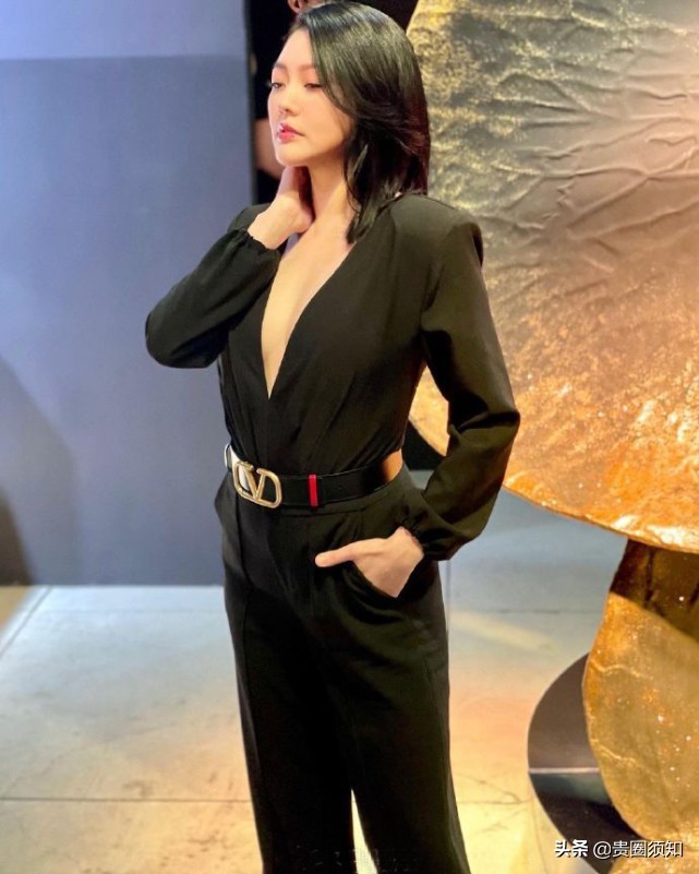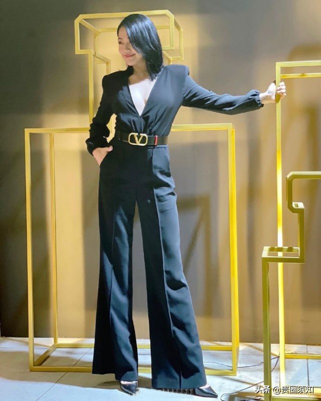 小S的穿衣风格一向走在时尚的尖端,这一身黑色连体套装的亮点在于领口的设计,束腰设计拉长腿部线条,一双逆天的长腿十分抢镜,很有超模范,虽然小S个子不高,但身材比例真的好,穿出一米八的既视感。