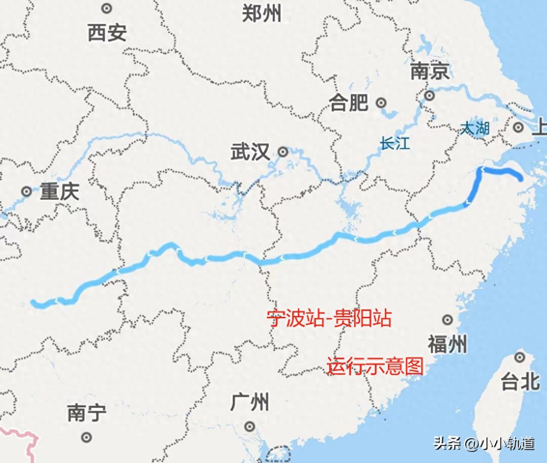 K848次列车由宁波至贵阳,杭州南站不停靠,耗时约28小时