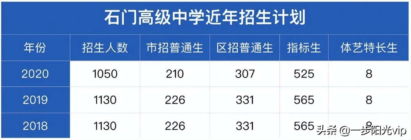 据学校发布的2022年的招生情况,本年石门高级中学招生1130人,虽然今年教育调控,招生面向区域,但其实与往年其实没有太多的招生出入,一起看看对比一下: