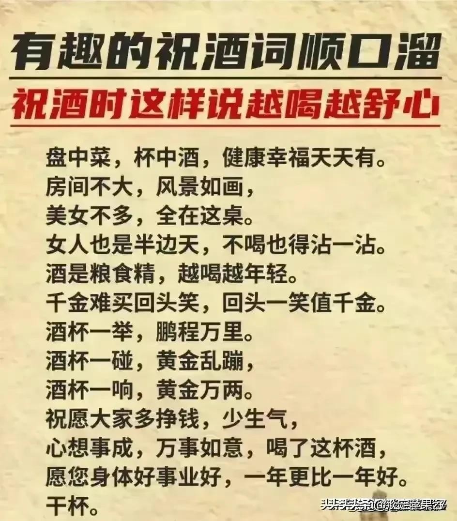 终于有人把“喝酒划拳顺口溜”整理好了,赶紧收藏起来看看吧。