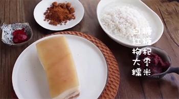 五花肉:250g糯米:100g红糖:100g熟猪油:50g红豆沙:50g