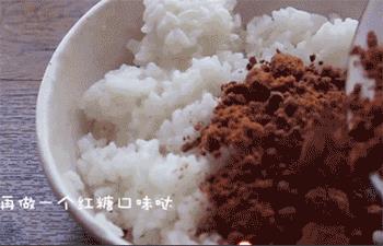 6、在糯米中加入适量红糖、熟猪油,搅拌均匀备用。