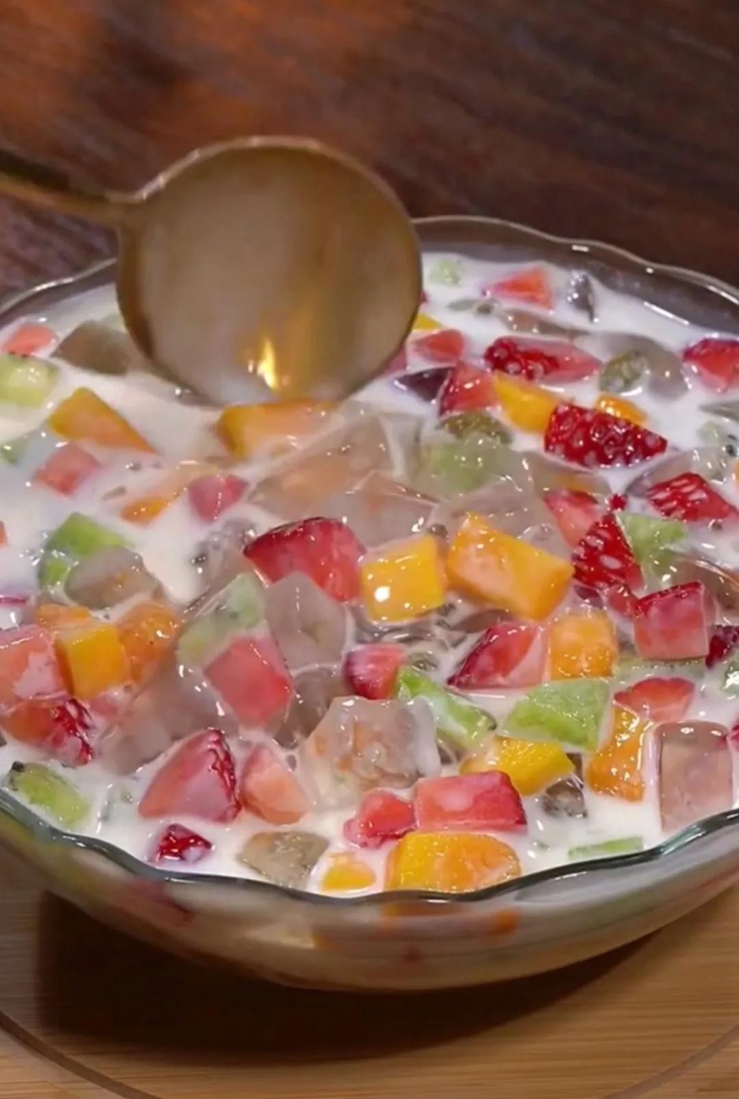 首先把约2.5斤水烧开,再取白凉粉50G放热水约250mI(吃饭的碗大小)搅拌均匀,然后再把搅拌均匀的凉粉糊倒入沸水中,继续边煮边搅拌,加热至沸腾,最后倒入碗中等待冷却成膏状,之后就可以放入冰箱保存,这样吃起来就是冰冰凉凉的了,吃的时候切成块状,根据自己的口味可以适量放入各式各样的水果丁,牛奶或者酸奶,桂花,茉莉,装饰一下更有美感和口感哟,若是想尝试别的口味,可以去超市买一些柠檬,薄荷粉呀之类的,这样的换着不同味道的凉爽凉粉,吃起来是不是幸福感满满的呀