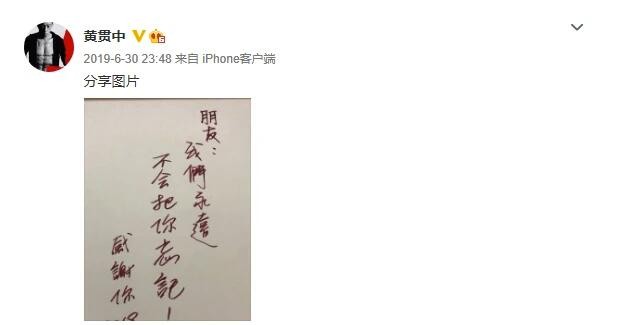 黄贯中写道:“28年前,失去了一个好朋友,世界少了一个天才,其实我知道你没有走过,你一直都在,就在我左右,每当音乐响起时,你比以往任何一刻都更贴近我们,对,你不在天堂,也不再地狱,你就在我们的心里,家驹,谢谢你给我们的一切”。