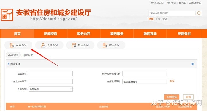 用户可以在浏览器输入地方名+住房城乡建设局,然后找到查询中心,输入企业名称即可查询,比如安徽省住房和城乡建设厅