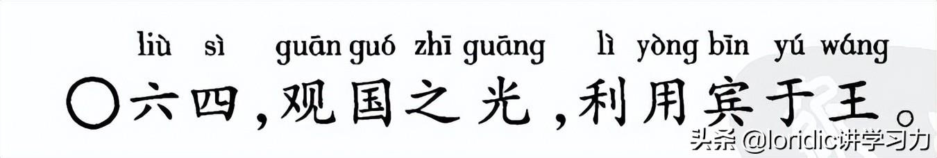 六四阴爻居柔位,得位但无应。但她上承九五,跟九五最近,所以能仔细地“观国之光”。然后利用宾客的身份去辅助君王。因为她的志向就是达则兼济天下。