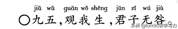 九五阳爻居刚位,又中又正,他也是观卦的主爻,象征着君王。大家都观察着他。所以他需要做好榜样,建立好教化的制度,行君子之道,以德化天下,自然就无咎。