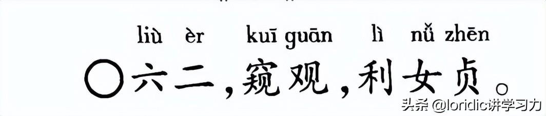六二,像从小孔或缝隙里看一样去观察,有利于女人坚持下去。