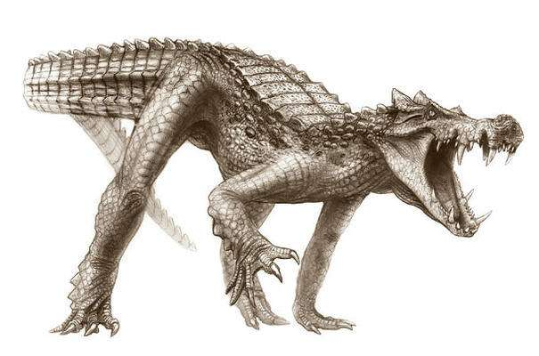 然而,吃恐龙的鳄鱼好像并不是什么稀奇事,近来巴西的一种四足行走、只用后腿奔跑的鳄鱼也被发现了,大概生活在2.3亿年前,被称为“当时的霸王龙”。