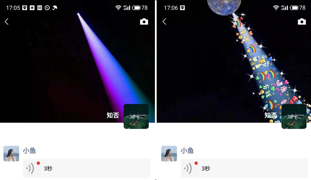 大家好,最近一段时间“一束光”的朋友圈背景火了,我们只要打开自己的朋友圈,就会有一束光照耀着自己的头像,效果非常的酷炫,样式也非常的多,我们先看下部分的效果。