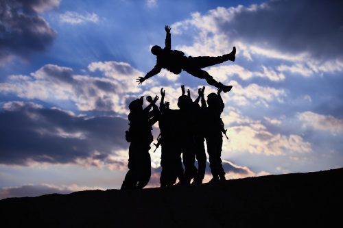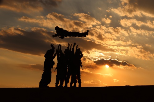 近日,南部战区某旅官兵们开展抵近侦察、战术协同、擒拿格斗等课目训练。训练间隙,战士们在美丽夕阳的映衬下,变成一道帅气的风景。