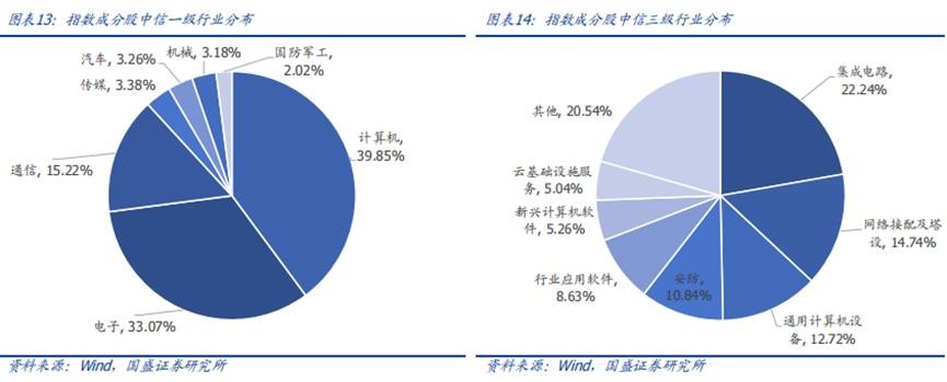 从指数成分股行业分布来看,主要布局计算机、电子相关行业。截至2024年9月18日,指数成分股涉及7个中信一级行业,主要以计算机、电子、通信等行业为主,这3个行业累计权重占比达到88.14%。从中信三级行业来看,指数成分股主要集中于集成电路、网络接配及塔设、通用计算机设备、安防、行业应用软件、新兴计算机软件、云基础设施服务等行业,这几个行业权重均超过5%,累计权重占比达到79.47%。