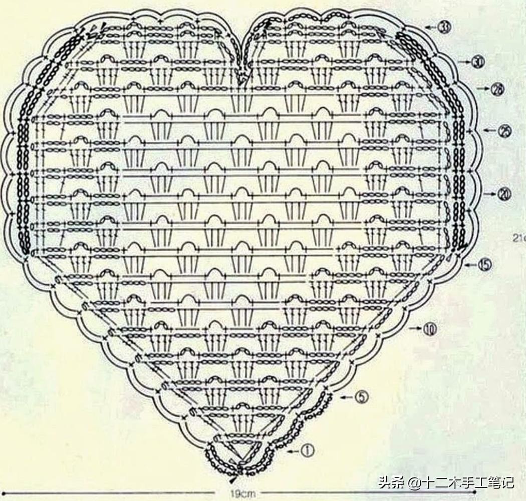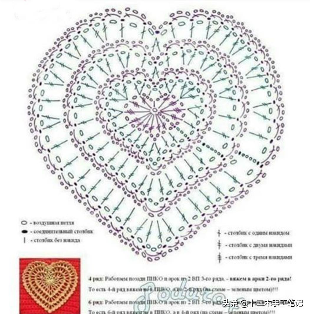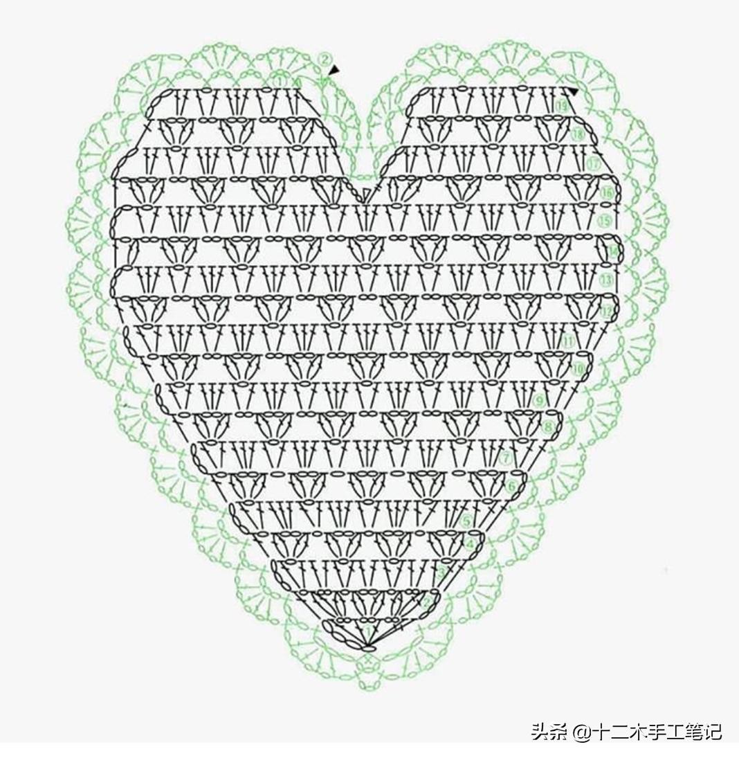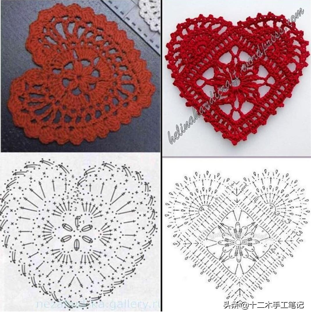 一组心形钩针花样,看看你能用到哪些地方呢。附图解教程