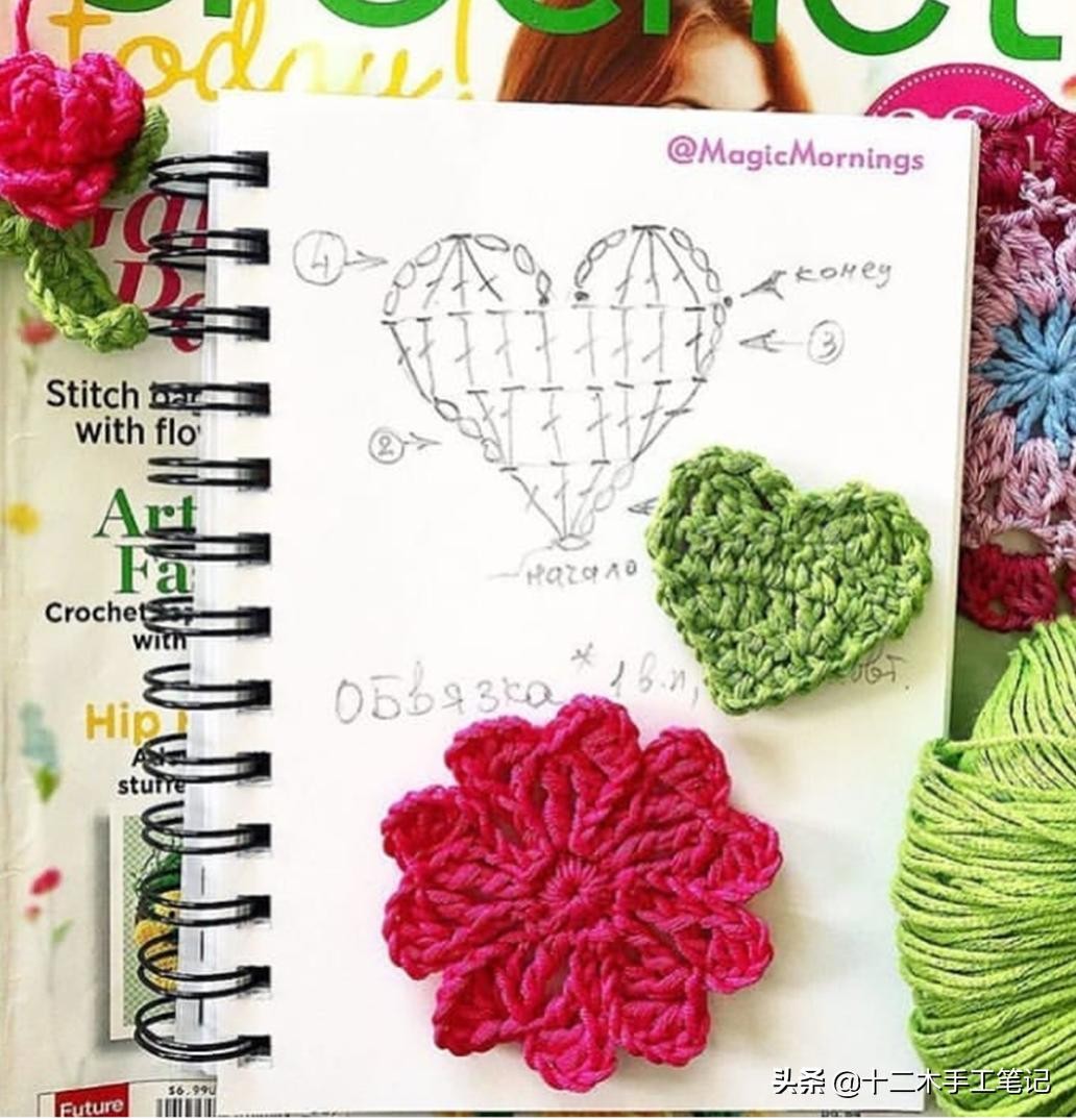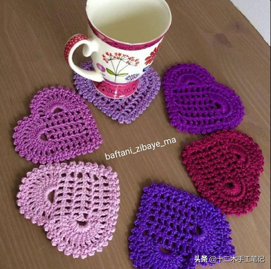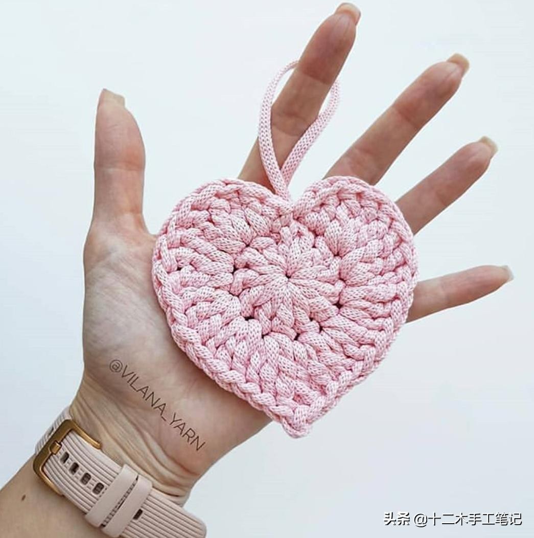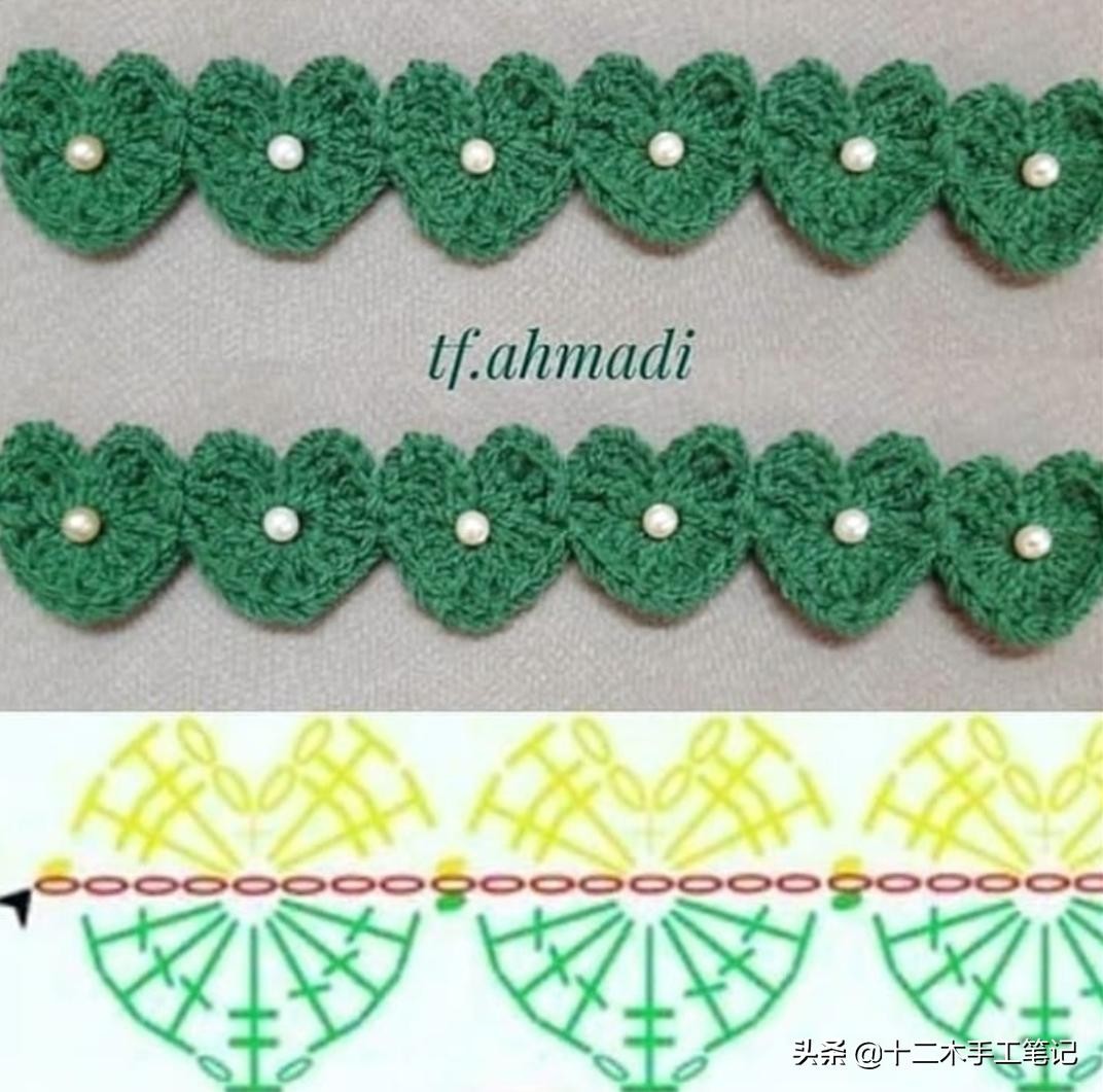 一组心形钩针花样,看看你能用到哪些地方呢。附图解教程
