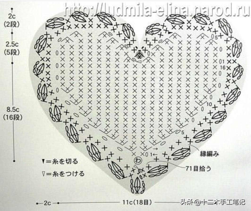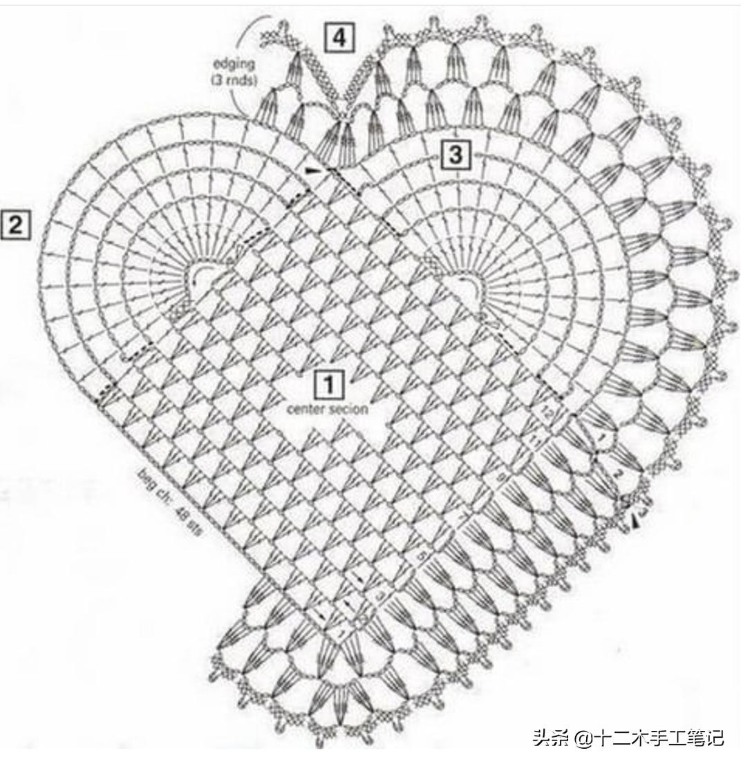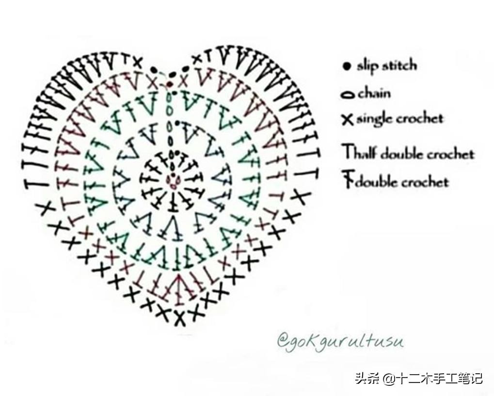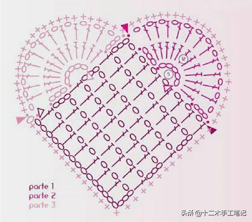 一组心形钩针花样,看看你能用到哪些地方呢。附图解教程