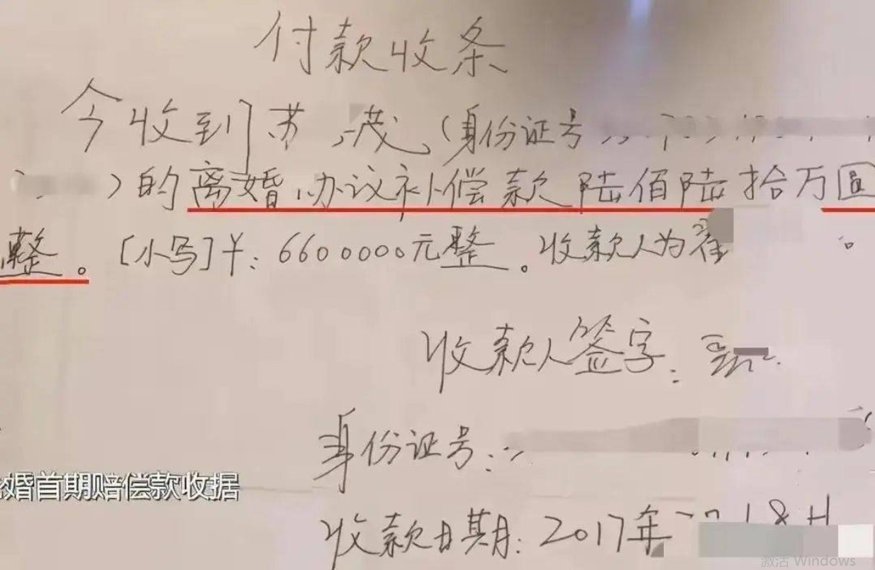 翟欣欣提出索要1000万精神损失费,这是第一部分660万,还有340万没有付。