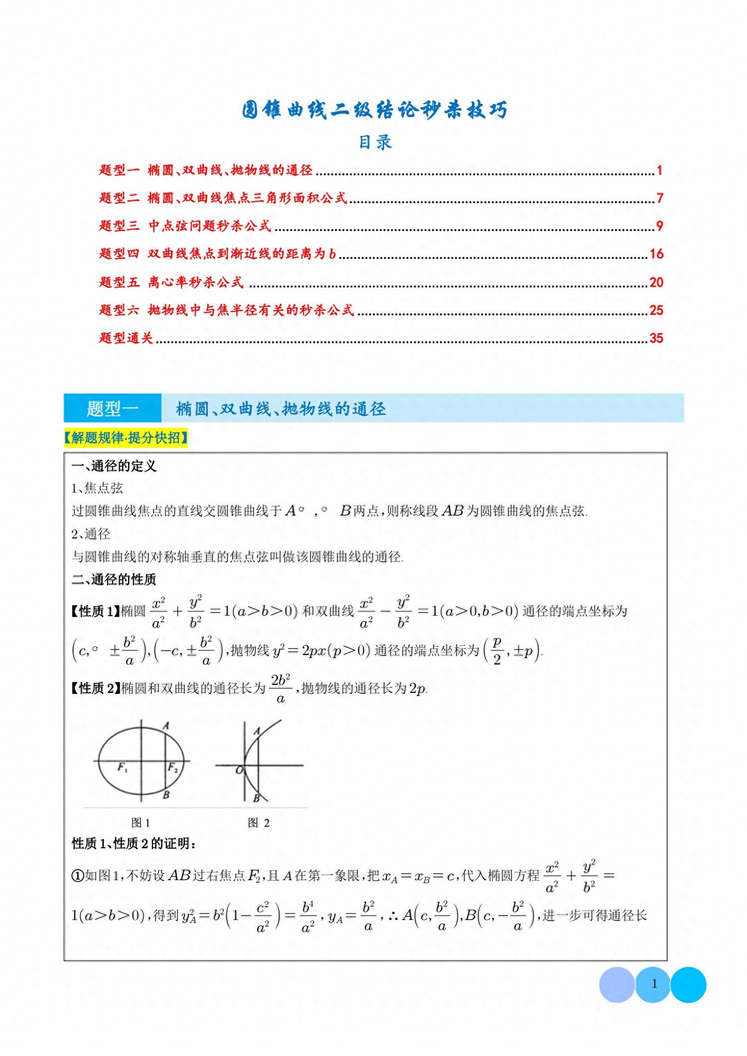 高中数学圆锥曲线二级结论秒杀技巧,记得要看!