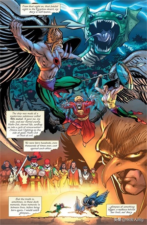 DC改变了鹰侠和鹰女侠的整体设定,胡夫王子和翠阿雅公主只是他们俩转世中的一站,而不是起点,他们俩有着更神奇的起源。