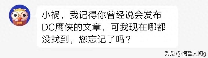 几天前,一位朋友私信小祸,问小祸以前文章中提到过会写DC的鹰侠,但是并没有找到,是不是忘写了。