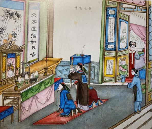 古人相信“香气”是实现人与神灵、逝者之间沟通的最佳载体。《红楼梦》多次写到拜佛、祀神、祭祖等场面,烧香是其中一项重要内容。比如第十七、十八回,元妃在大观园内,“忽见山环佛寺,忙另盥手进去焚香拜佛。”类似情节在书中有多处。