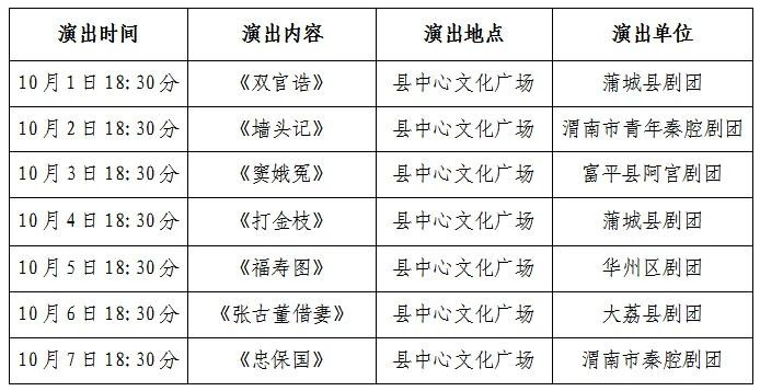 活动地点:椿林镇敬母寺村(10月1日17:00)、苏坊镇党定村(10月2日18:00)