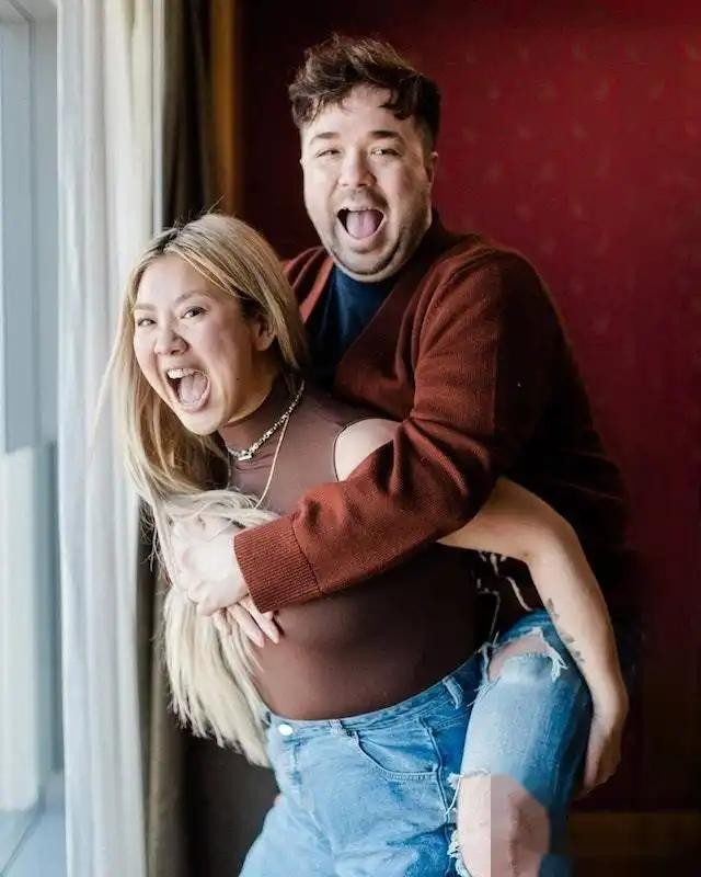 从两人相拥而抱的画面中可以看出,梁文礼与郑欣宜关系相当不错。