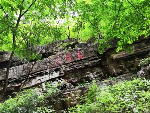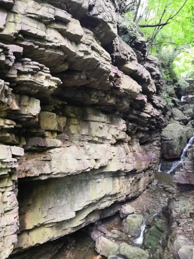回看对面的苍翠掩映中的天官亭,其实这一段就是W字形峡谷。舞钢 原本是一片汪洋大海,由于受地壳运动的影响,地层大幅度上升与下降,海水的不断侵入,使之海陆轮番占据,最后形成陆地山川,