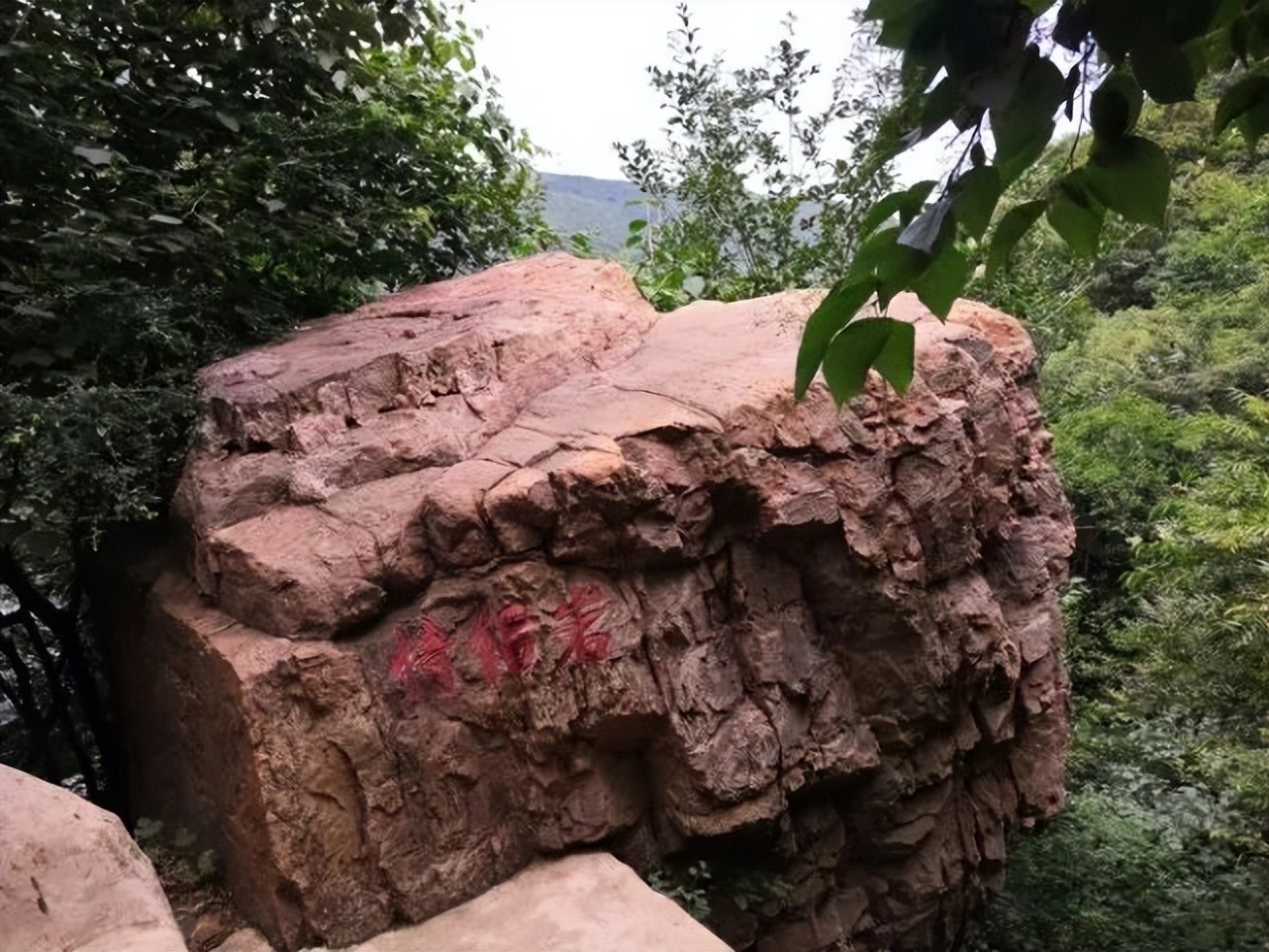 再看侧面山体绿荫间怪石堆叠。