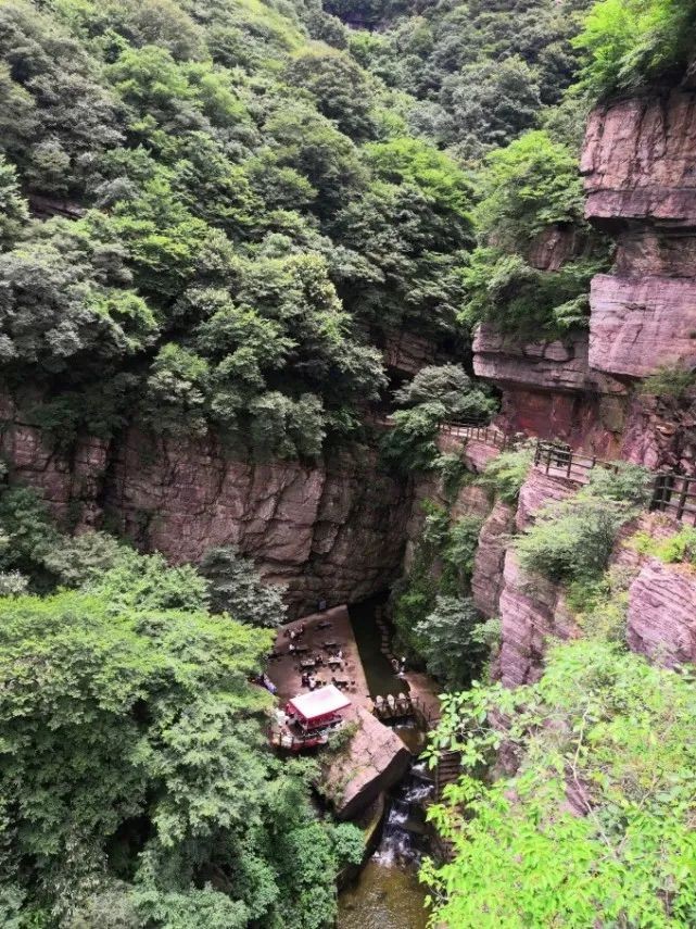 峡谷叫青龙峡,依崖修筑的褐红色观景台,估计雨天有些滑。