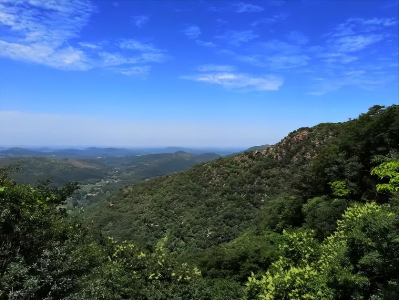 透过树林看天空湛蓝,白云悠悠,看景区地图,上面应该还有燃灯佛庙,貌似没有路,应该还没开发上不去,也不知道有没有野路。
