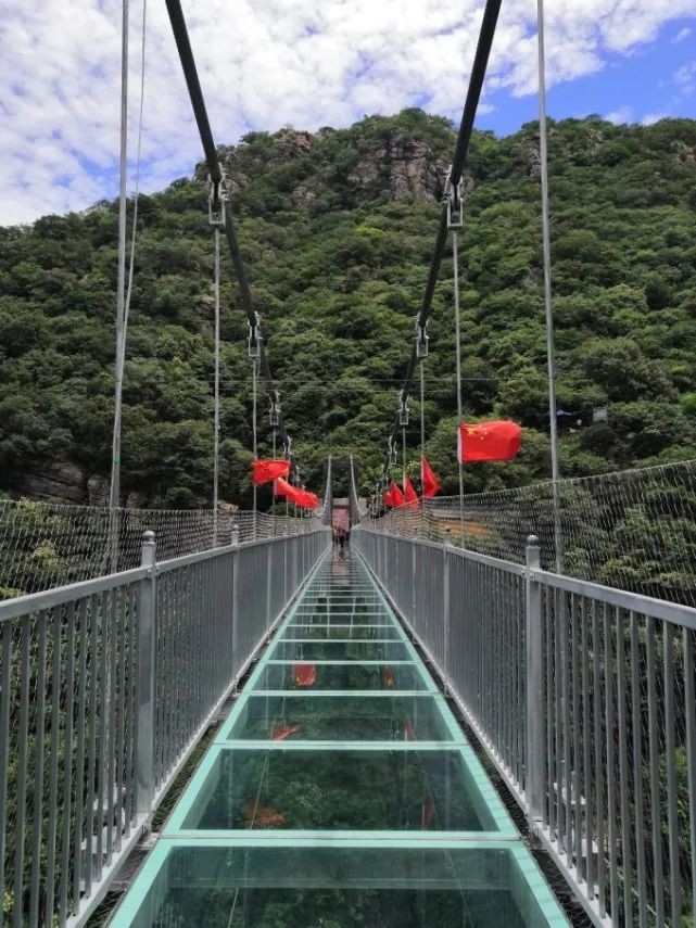 走一段光滑的下坡,经过中间悬崖谷上段,再上坡转弯处就是那座玻璃桥了。
