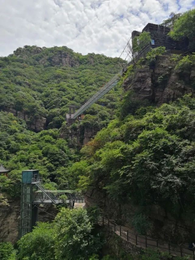 看对面的玻璃电梯,依崖修筑,直接到第一层栈道中段。