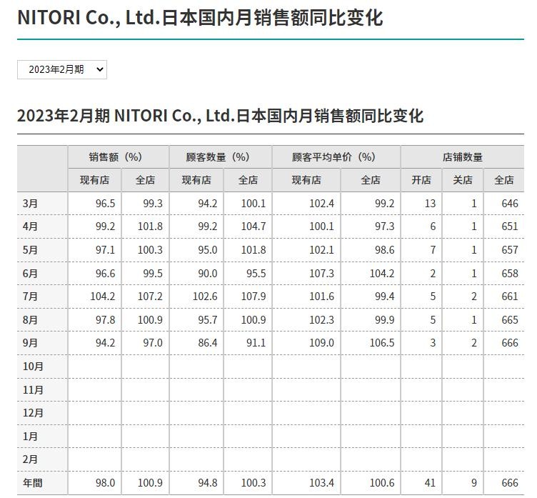 并且据2022年2月期官网财报显示,NITORI在2021-2022年期间,在全球净增79家店铺。今年(2022年)1月,马来西亚首店落地,3月,新加坡首店落地。至2023年3月期,其计划在日本净增100家店铺,海外43家店铺。