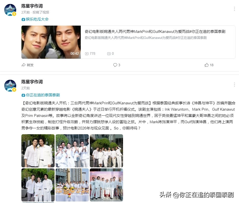 【奇幻电影版婉通夫人开机:三台两代男神MarkPrin和GulfKanawut为爱而战】